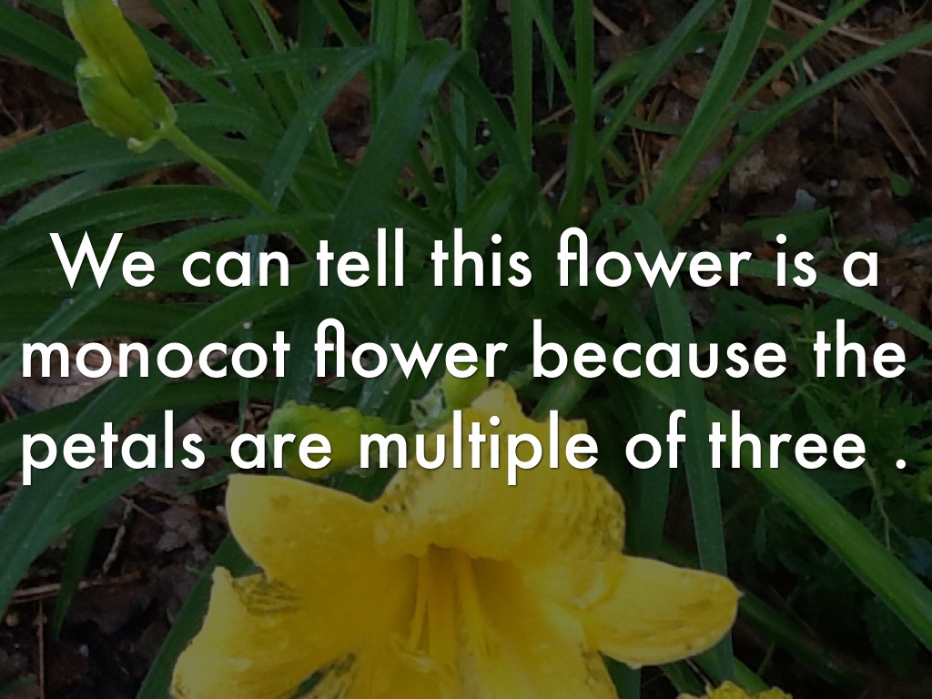 We can tell this flower is a monocot flower because the petals are multiple of three .