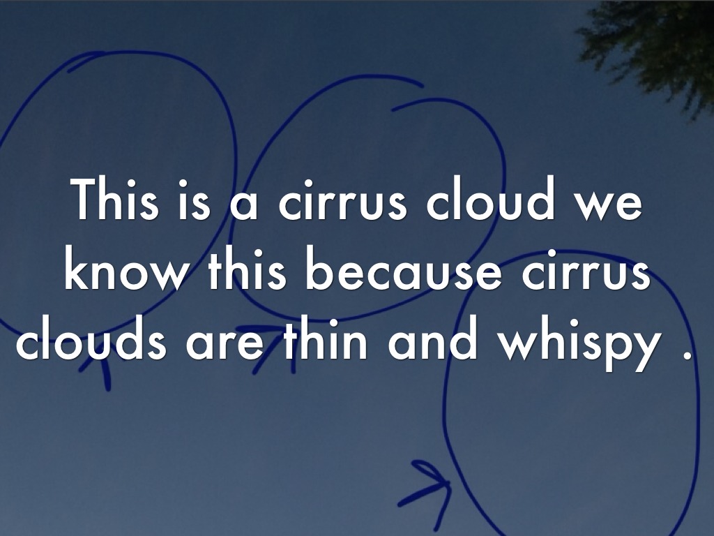 This is a cirrus cloud we know this because cirrus clouds are thin and whispy .