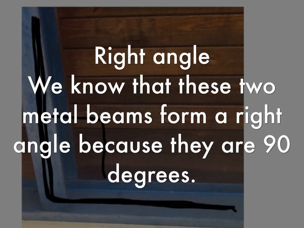 We know that these two metal beams form a right angle because they are 90 degrees.