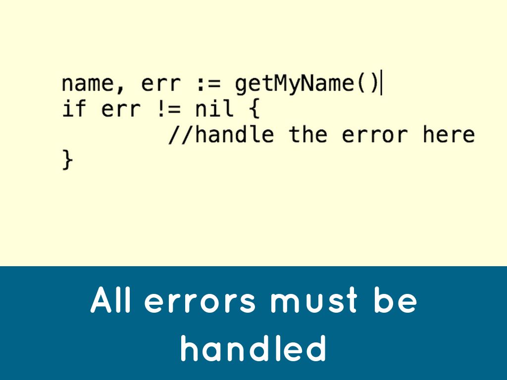 - function returns err, since you can't have unused variables, if the error isn't nil, you must handle it.
