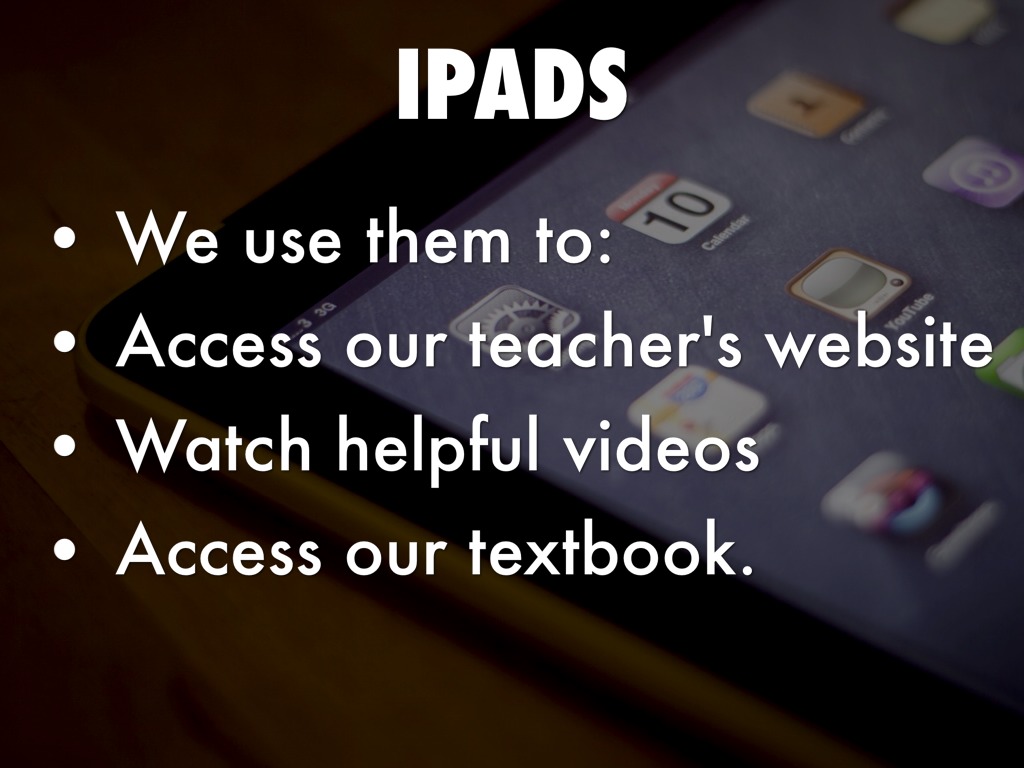 WE USE OUR IPADS AND THE VIDEOS TO LEARN INFO BEFORE LAB