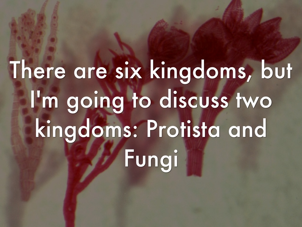 There are six kingdoms, but I'm going to discuss two kingdoms: Protista and Fungi