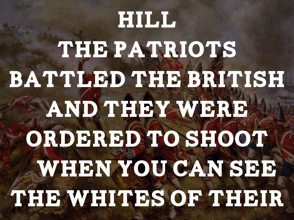 The patriots battled the British and they were ordered to shoot "when you can see the whites of their eyes."