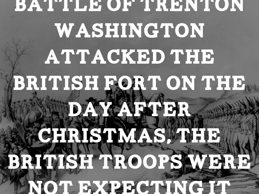 Battle of Trenton Washington attacked the British fort on the day after Christmas, the British troops were not expecting it