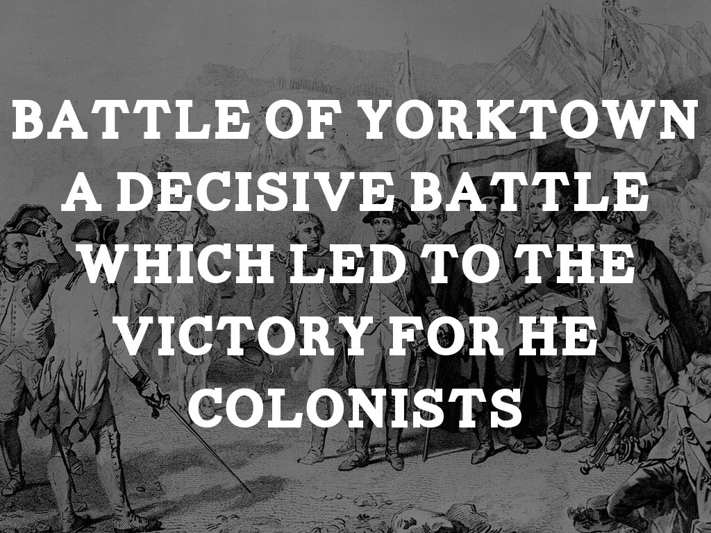 Battle of Yorktown a decisive battle which led to the victory for he colonists