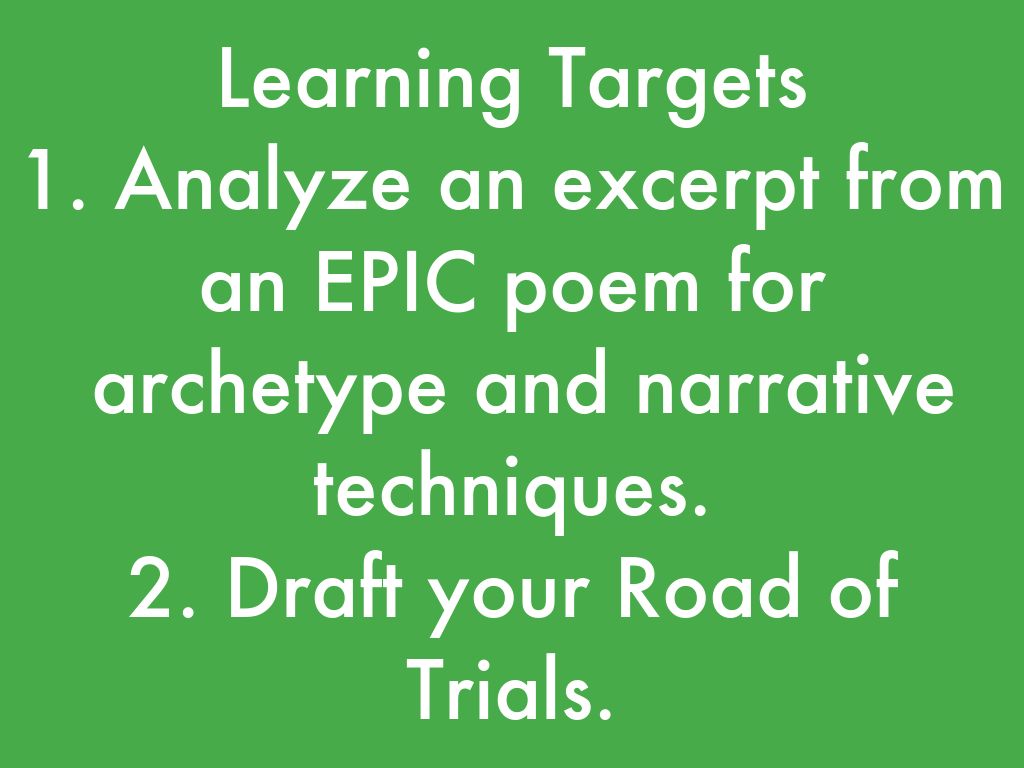 1. Analyze an excerpt from an EPIC poem for archetype and narrative techniques.