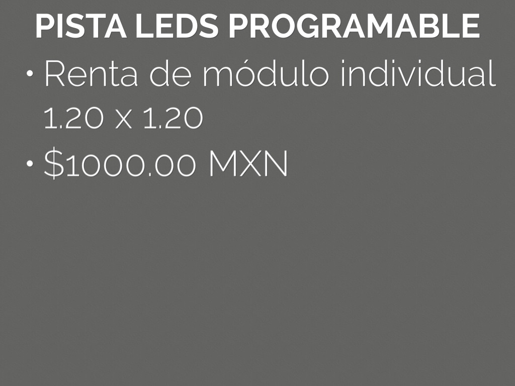 -Renta de pista de leds con programación, proyecta imagenes y texturas.