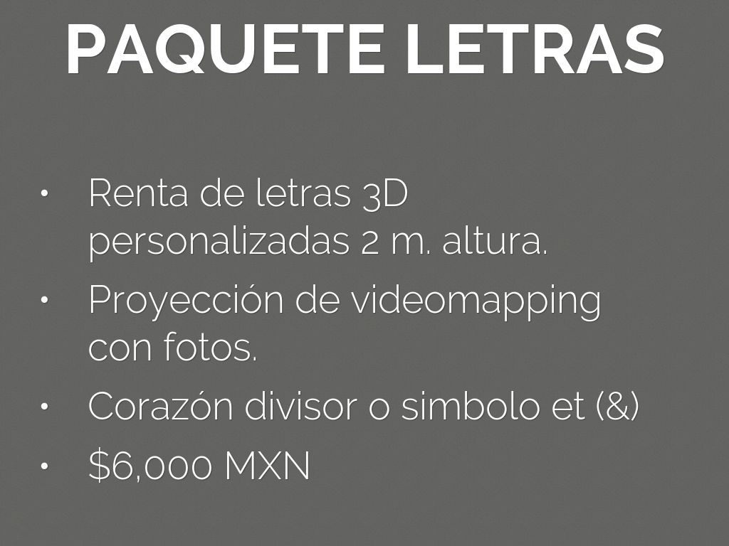 Renta letras espectaculares: $1500.00 MXN c/u