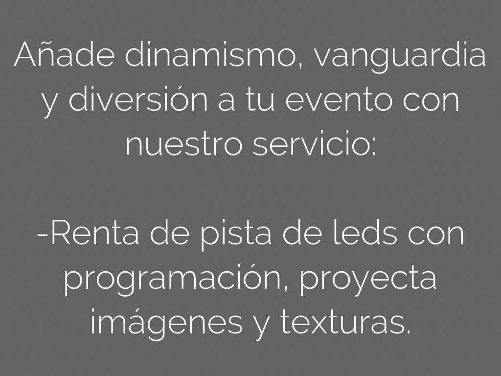 -Renta de pista de leds con programación, proyecta imágenes y texturas.