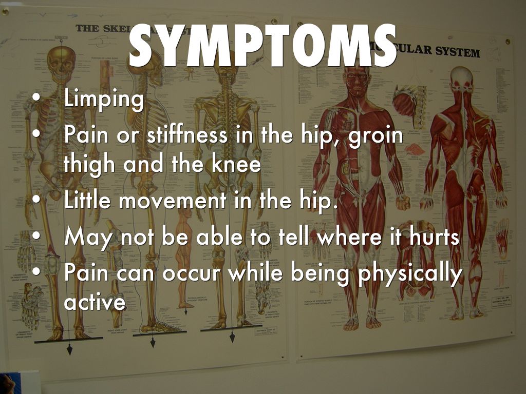 Pain or stiffness in the hip, groin thigh and the knee