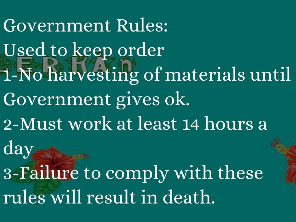 1-No harvesting of materials until Government gives ok.