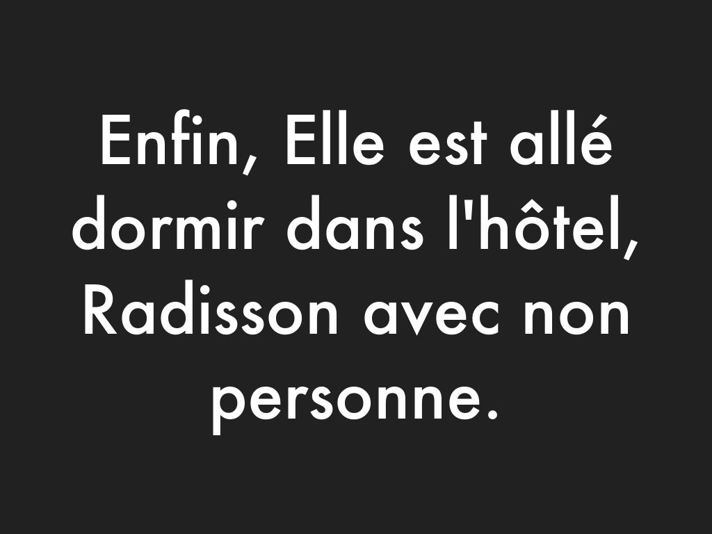 Enfin, Elle est allé dormir dans l'hôtel, Radisson avec non personne.