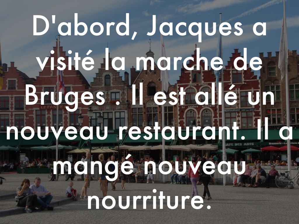 D'abord, Jacques a visité la marche de Bruges . Il est allé un nouveau restaurant. Il a mangé nouveau nourriture.