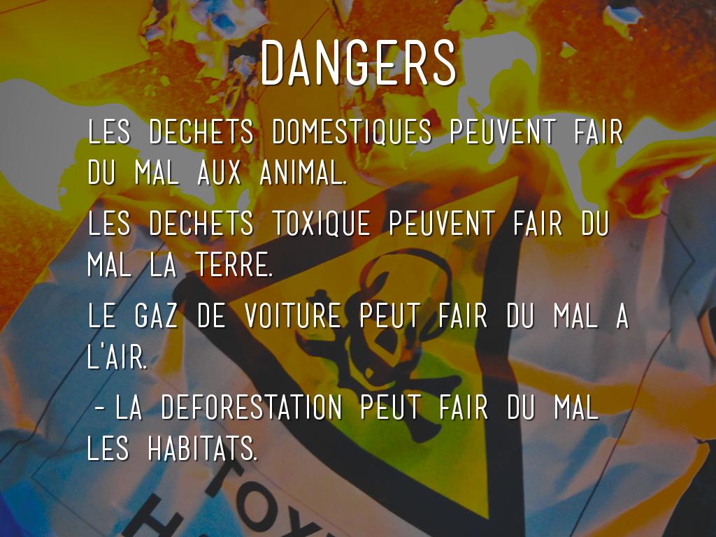 Les dechets toxique peuvent fair du mal la terre.