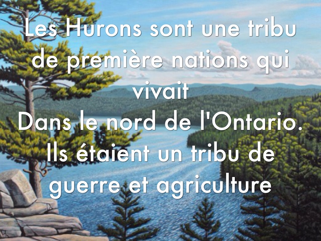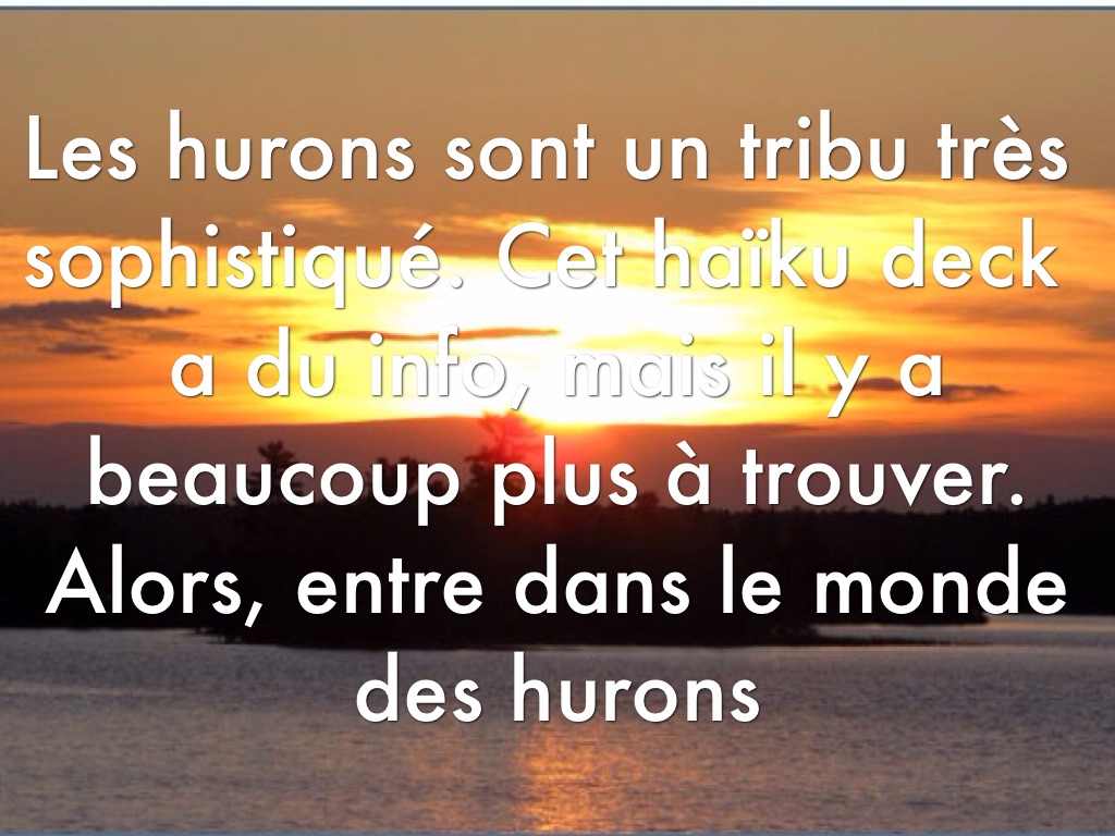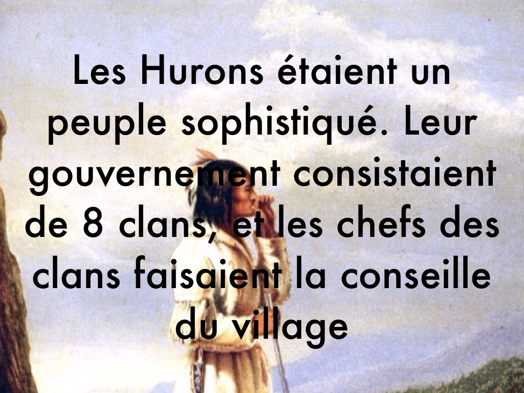 Les hurons sont un tribu très sophistiqué. Cet haïku deck a du info, mais il y a beaucoup plus à trouver.
