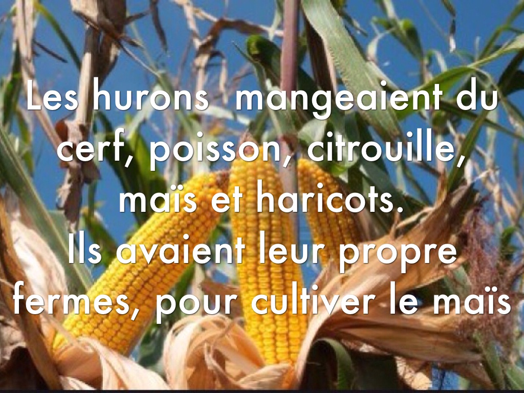 Les hurons mangeaient du cerf, poisson, citrouille, maïs et haricots.