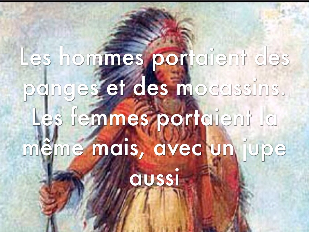 Les hommes portaient des panges et des mocassins. Les femmes portaient la même mais, avec un jupe aussi