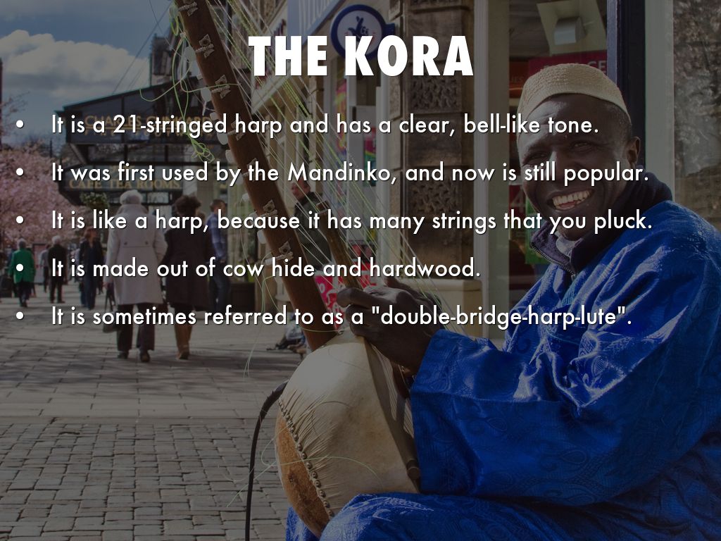 It has a dryer, more nasal sound than the kora.