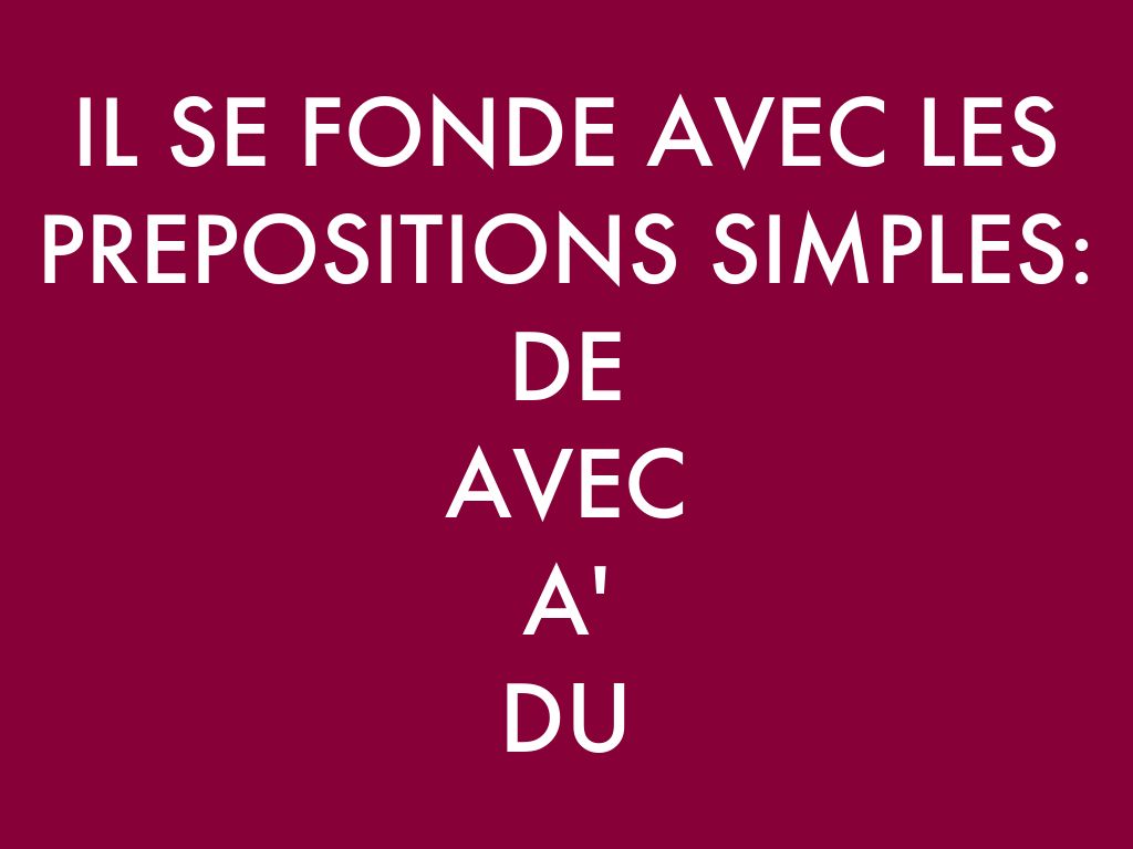 IL SE FONDE AVEC LES PREPOSITIONS SIMPLES: