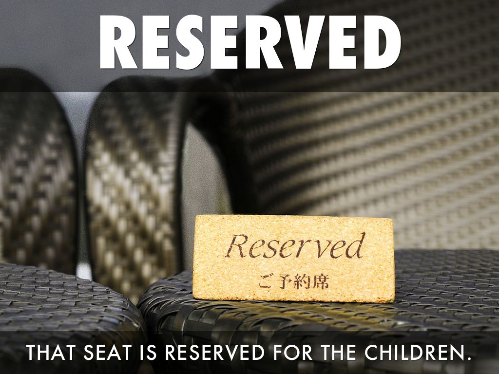 THAT SEAT IS RESERVED FOR THE CHILDREN.