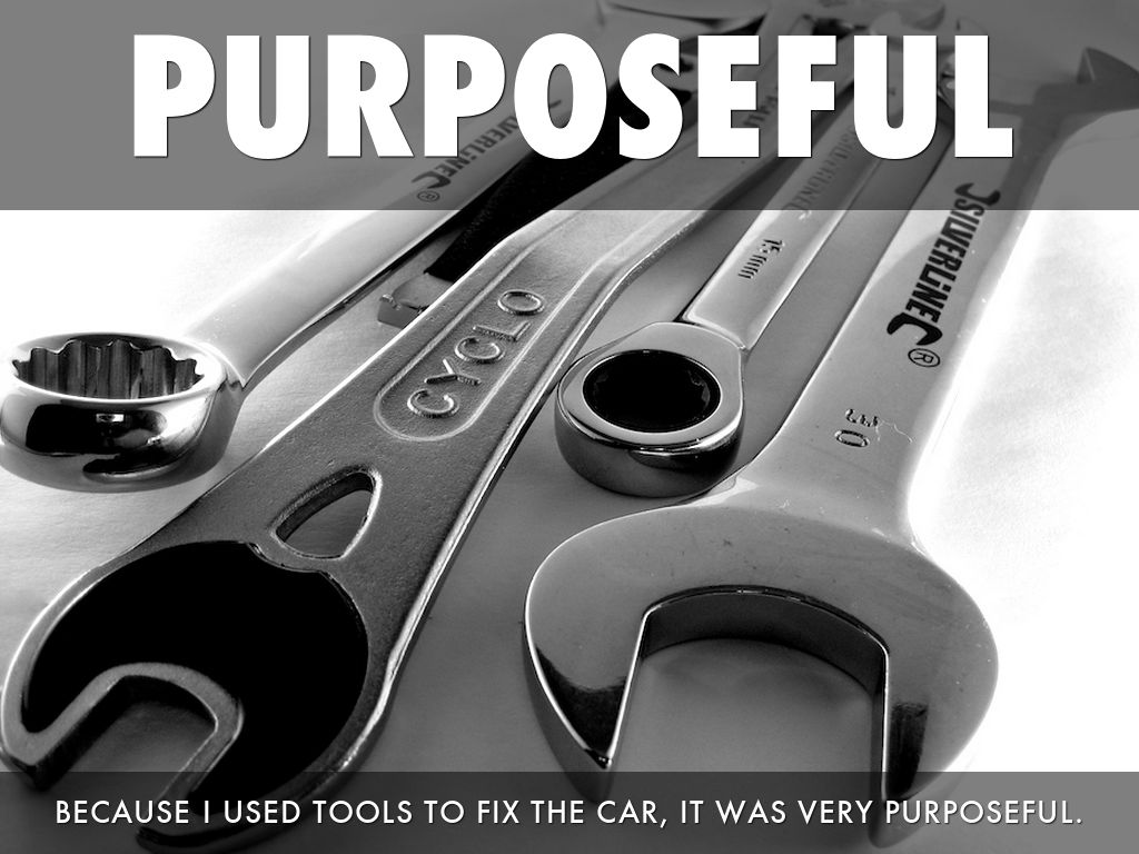 BECAUSE I USED TOOLS TO FIX THE CAR, IT WAS VERY PURPOSEFUL.