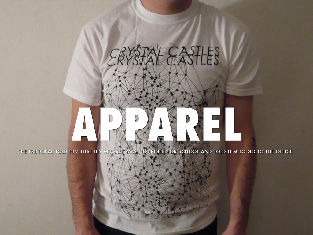 THE PRINCIPAL TOLD HIM THAT HIS APPAREL WAS NOT RIGHT FOR SCHOOL AND TOLD HIM TO GO TO THE OFFICE.