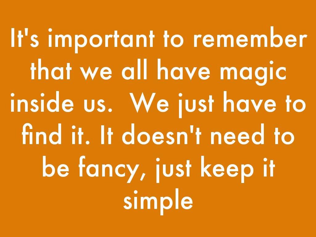 It's important to remember that we all have magic inside us. We just have to find it. It doesn't need to be fancy, just keep it simple