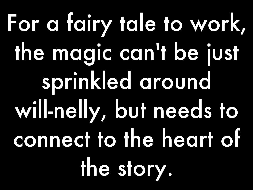For a fairy tale to work, the magic can't be just sprinkled around will-nelly, but needs to connect to the heart of the story.