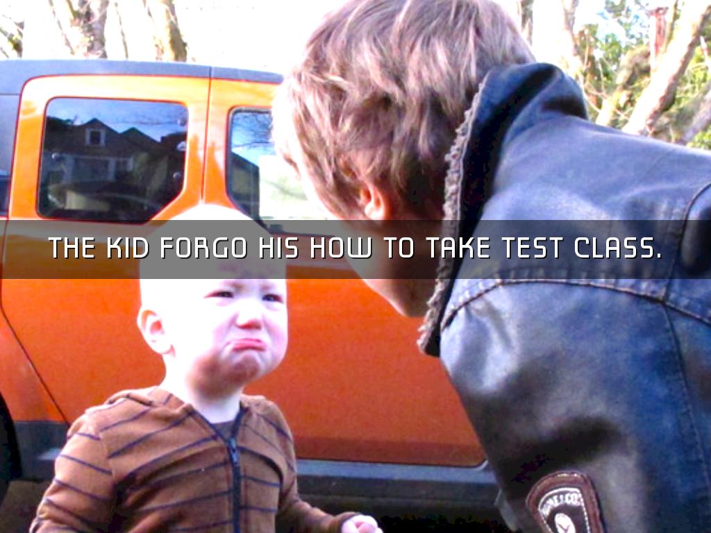 THE KID FORGO HIS HOW TO TAKE TEST CLASS.