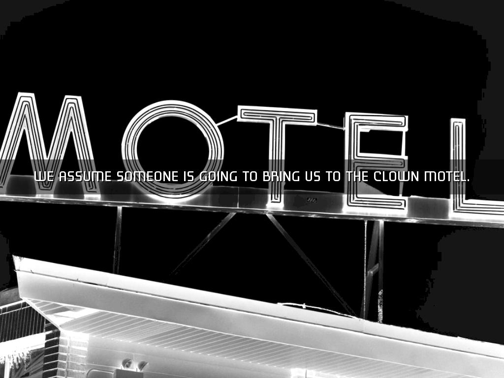 WE ASSUME SOMEONE IS GOING TO BRING US TO THE CLOWN MOTEL.