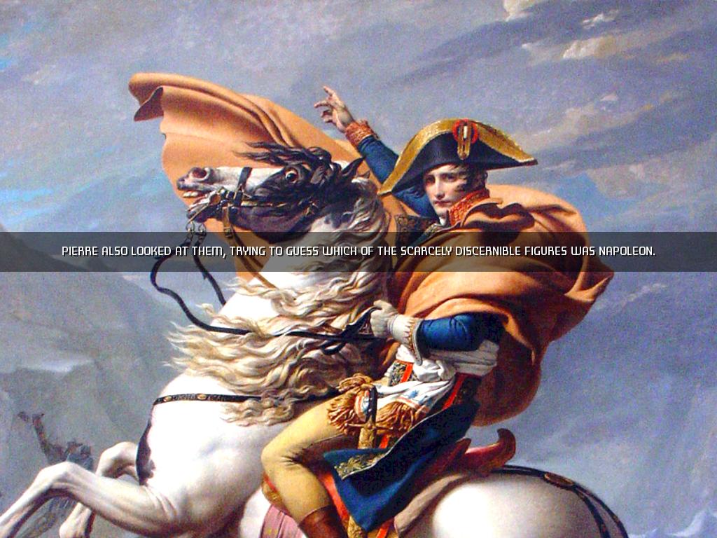 Pierre also looked at them, trying to guess which of the scarcely discernible figures was Napoleon.