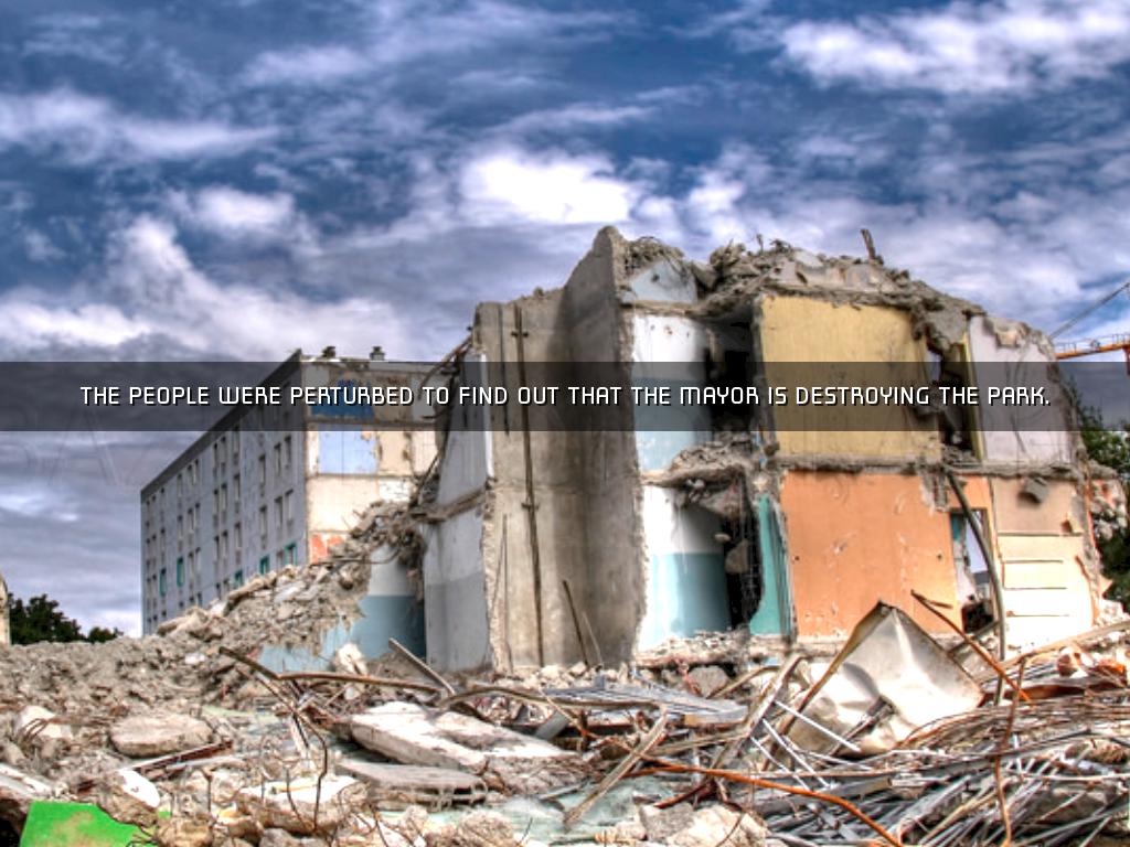THE PEOPLE WERE PERTURBED TO FIND OUT THAT THE MAYOR IS DESTROYING THE PARK.