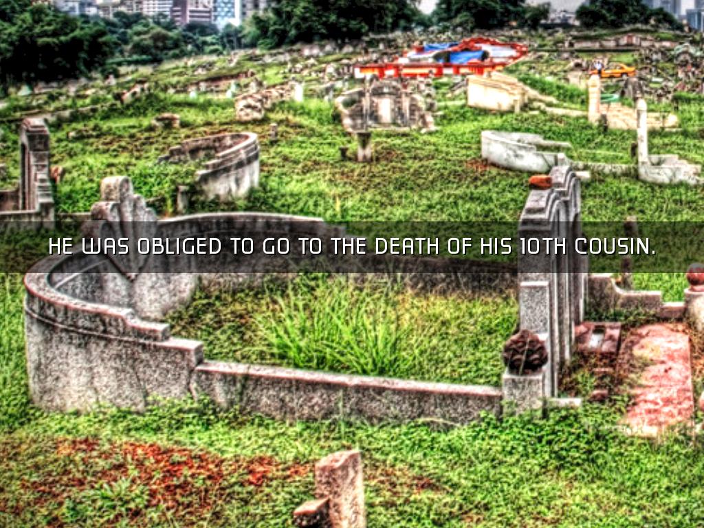 HE WAS OBLIGED TO GO TO THE DEATH OF HIS 10TH COUSIN.