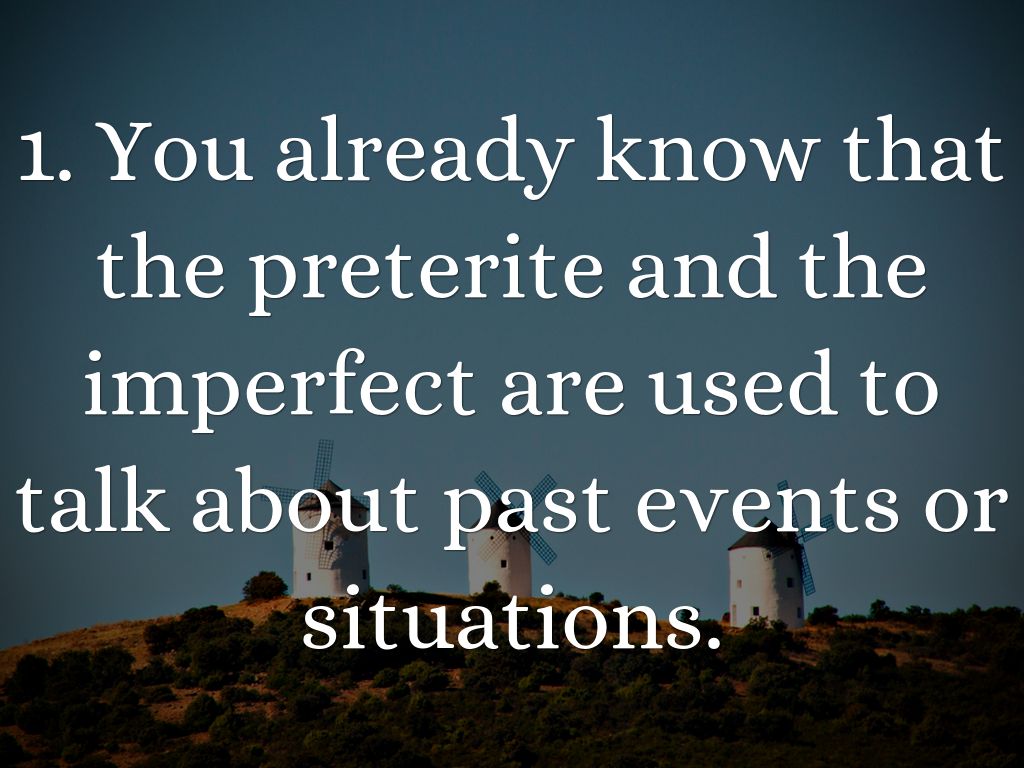 1. You already know that the preterite and the imperfect are used to talk about past events or situations.