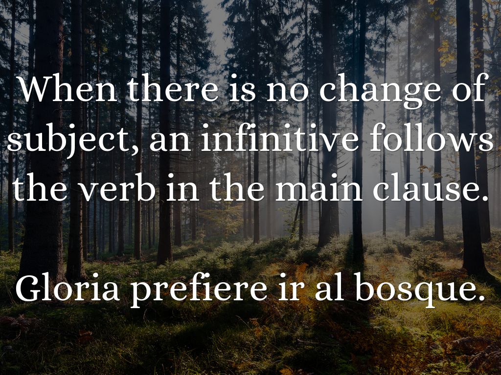 When there is no change of subject, an infinitive follows the verb in the main clause.