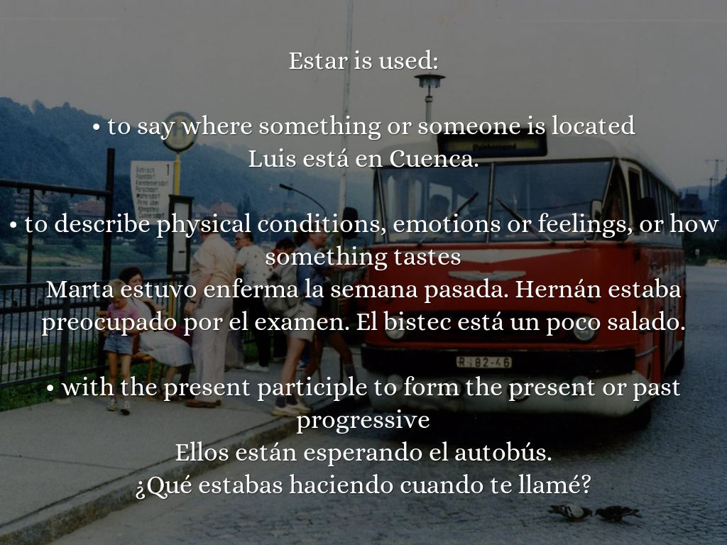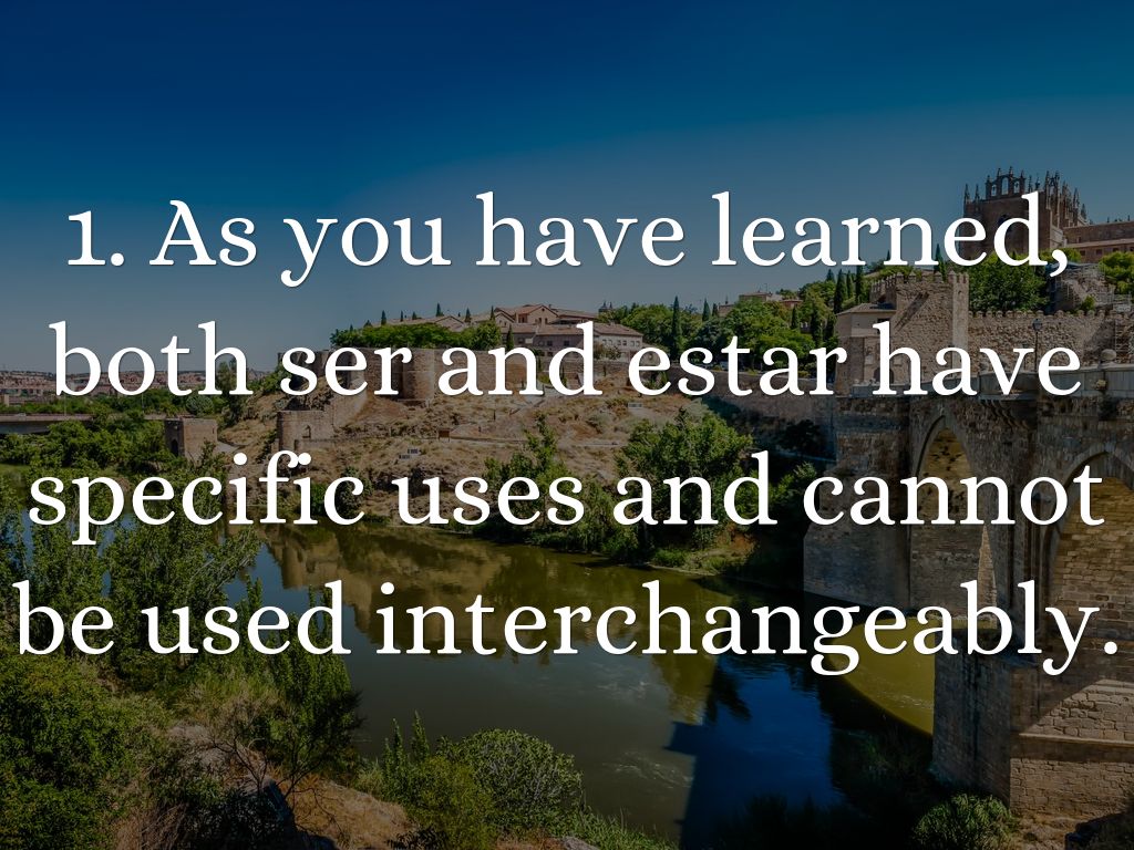 1. As you have learned, both ser and estar have specific uses and cannot be used interchangeably.