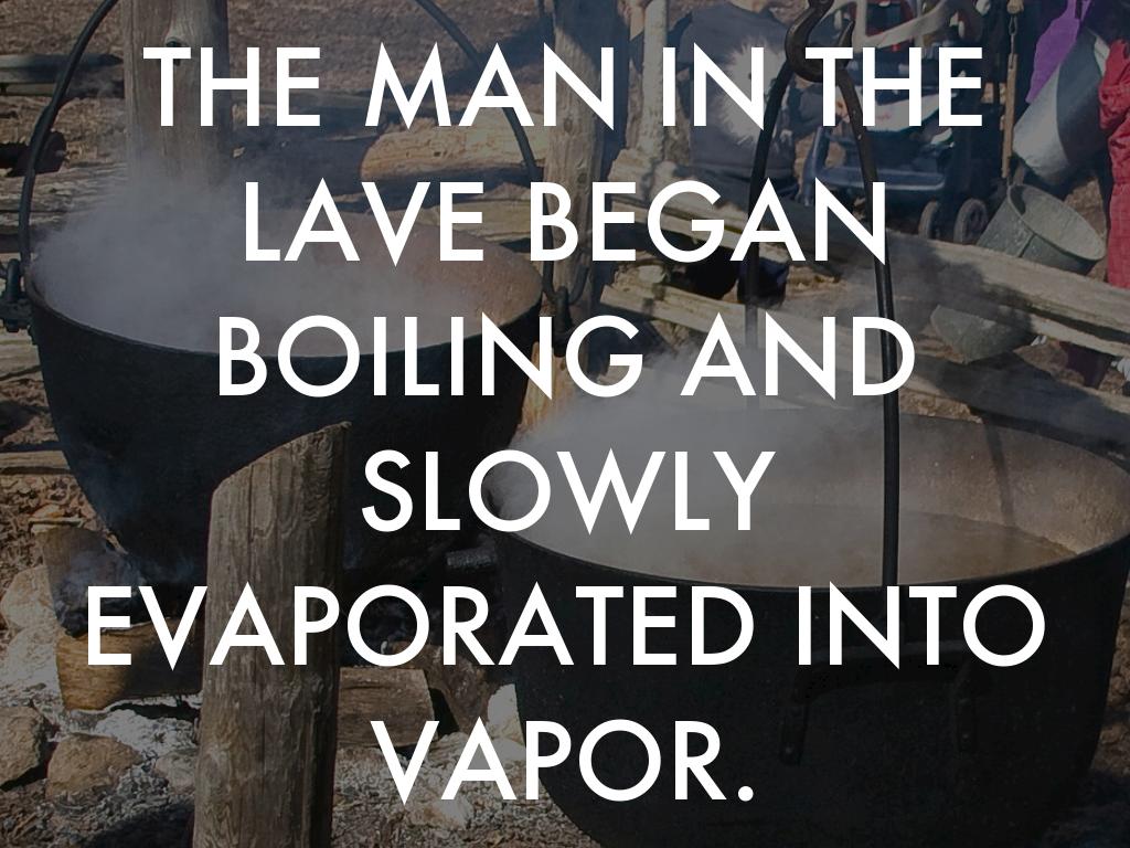 THE MAN IN THE LAVE BEGAN BOILING AND SLOWLY EVAPORATED INTO VAPOR.