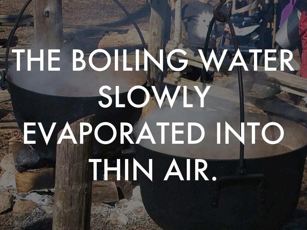 THE BOILING WATER SLOWLY EVAPORATED INTO THIN AIR.