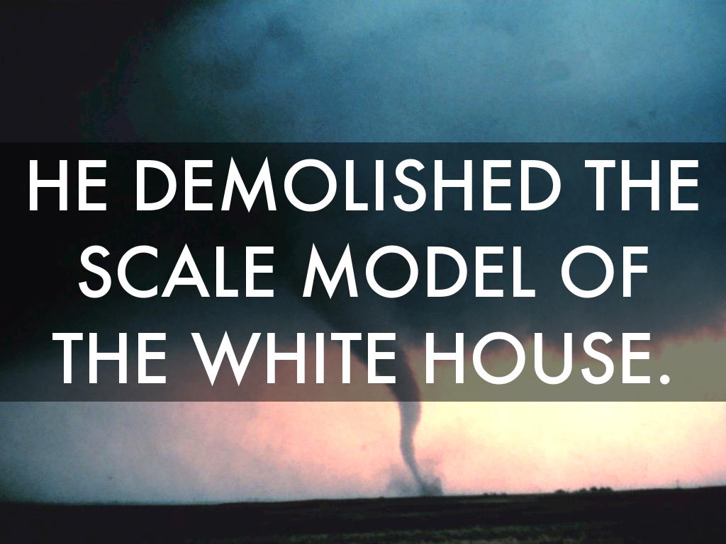 HE DEMOLISHED THE SCALE MODEL OF THE WHITE HOUSE.
