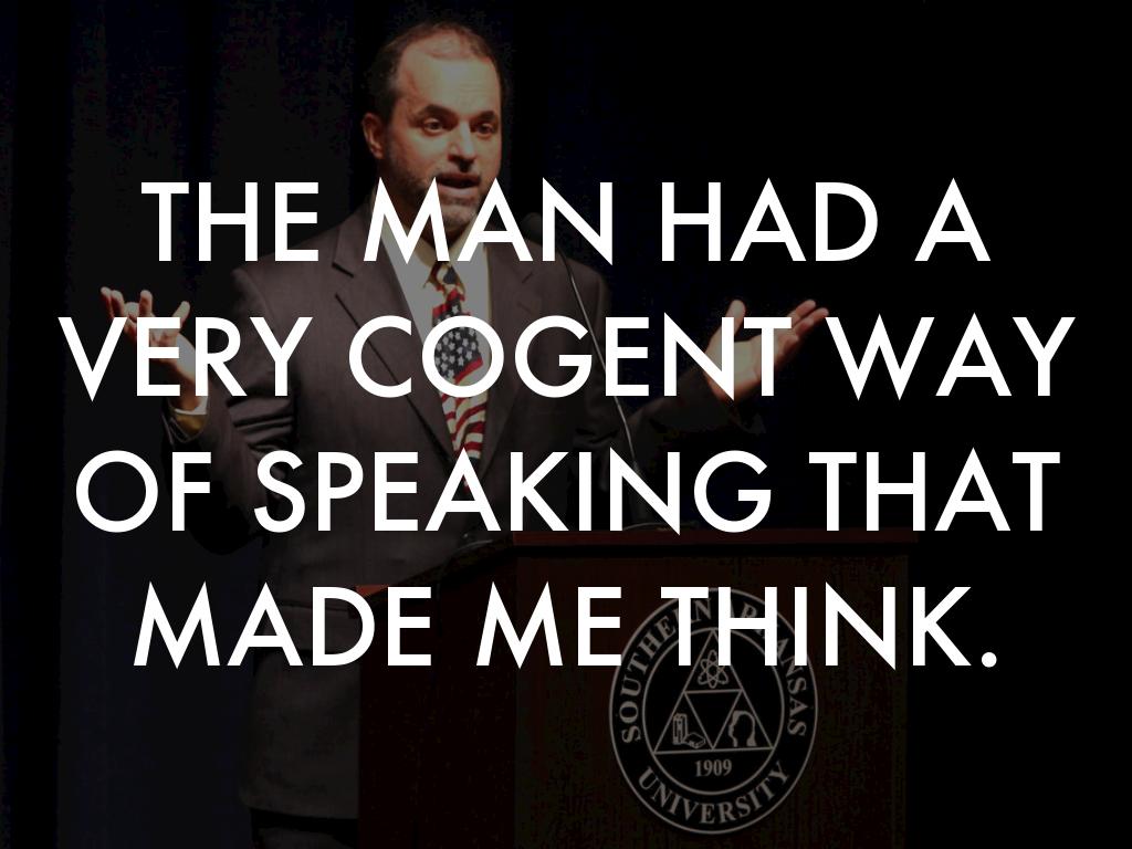 THE MAN HAD A VERY COGENT WAY OF SPEAKING THAT MADE ME THINK.