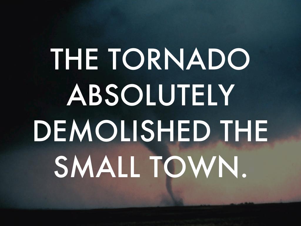 THE TORNADO ABSOLUTELY DEMOLISHED THE SMALL TOWN.