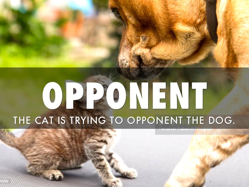THE CAT IS TRYING TO OPPONENT THE DOG.