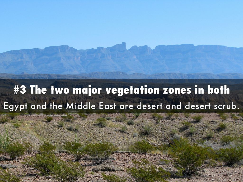 Egypt and the Middle East are desert and desert scrub.