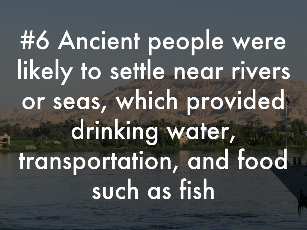 #6 Ancient people were likely to settle near rivers or seas, which provided drinking water, transportation, and food such as fish