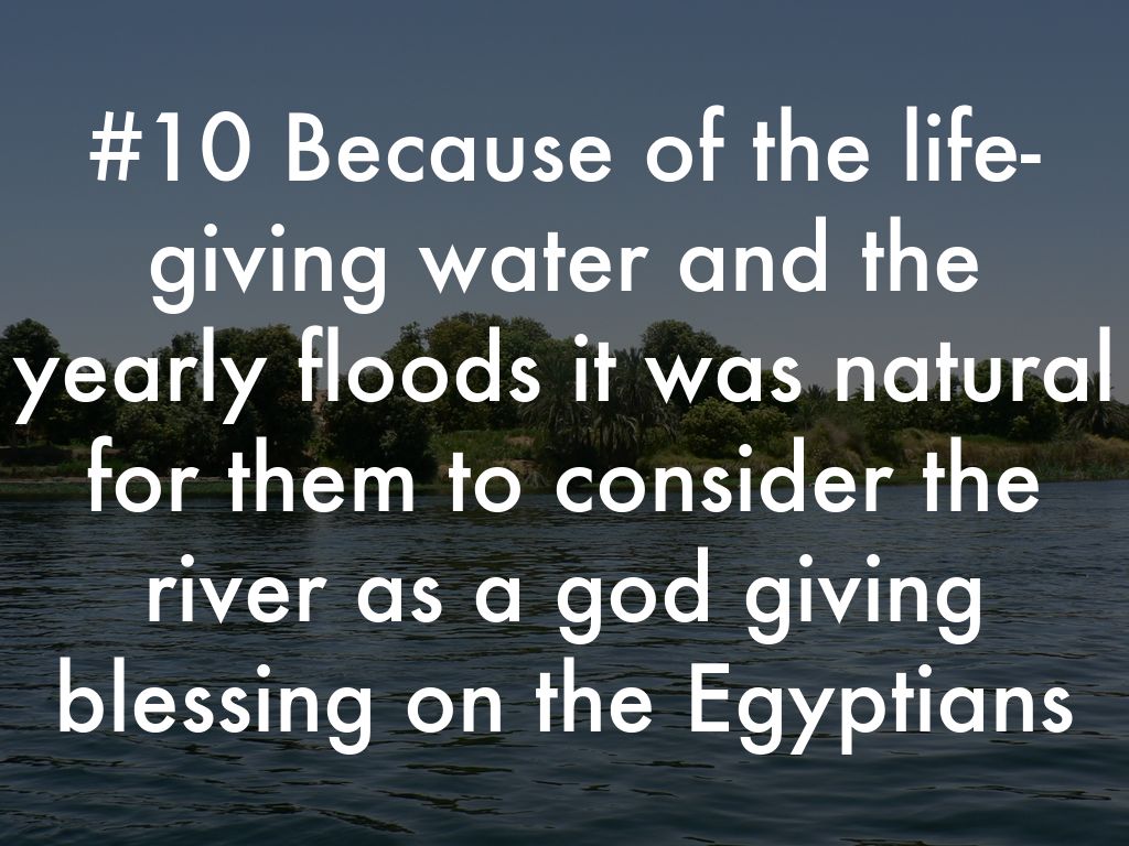 #10 Because of the life-giving water and the yearly floods it was natural for them to consider the river as a god giving blessing on the Egyptians