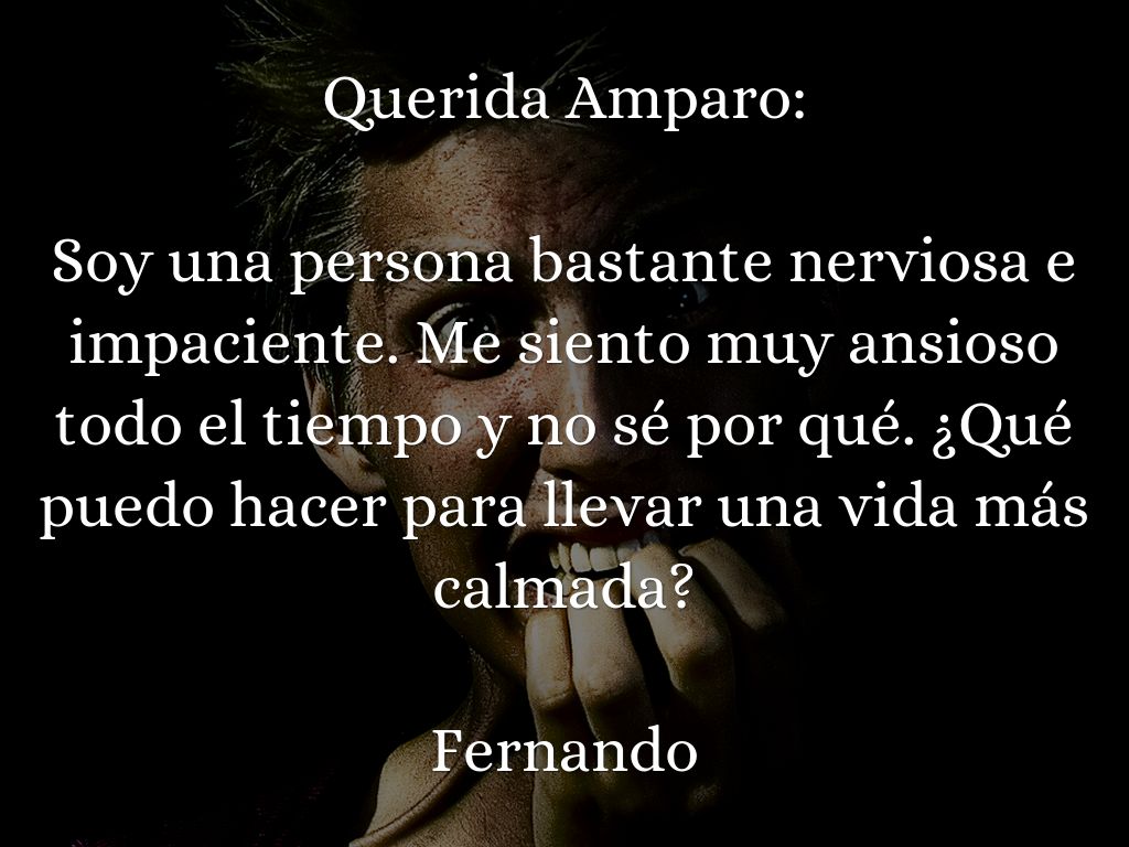 Soy una persona bastante nerviosa e impaciente. Me siento muy ansioso todo el tiempo y no sé por qué. ¿Qué puedo hacer para llevar una vida más calmada?
