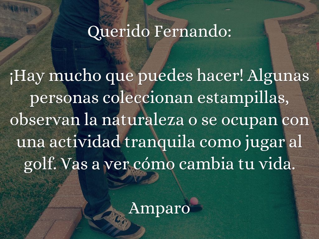 ¡Hay mucho que puedes hacer! Algunas personas coleccionan estampillas, observan la naturaleza o se ocupan con una actividad tranquila como jugar al golf. Vas a ver cómo cambia tu vida.