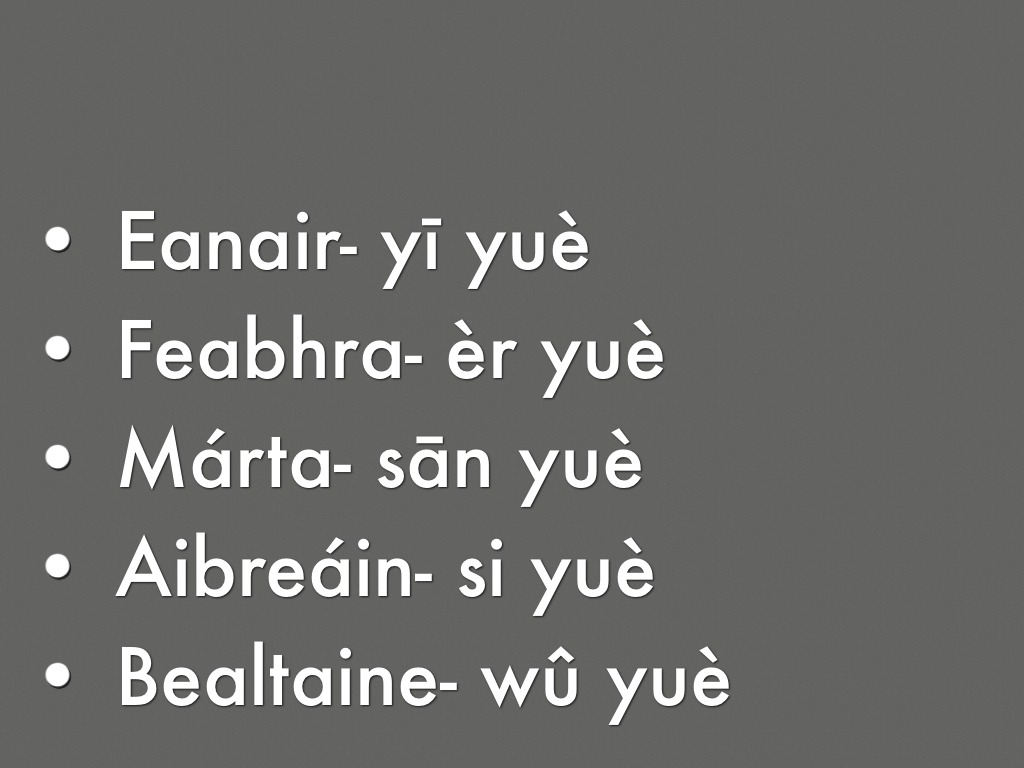 Is féidir leat na míosa i béarla a chuir ar taobh amháin agus na cinn sínis ar an toabh,