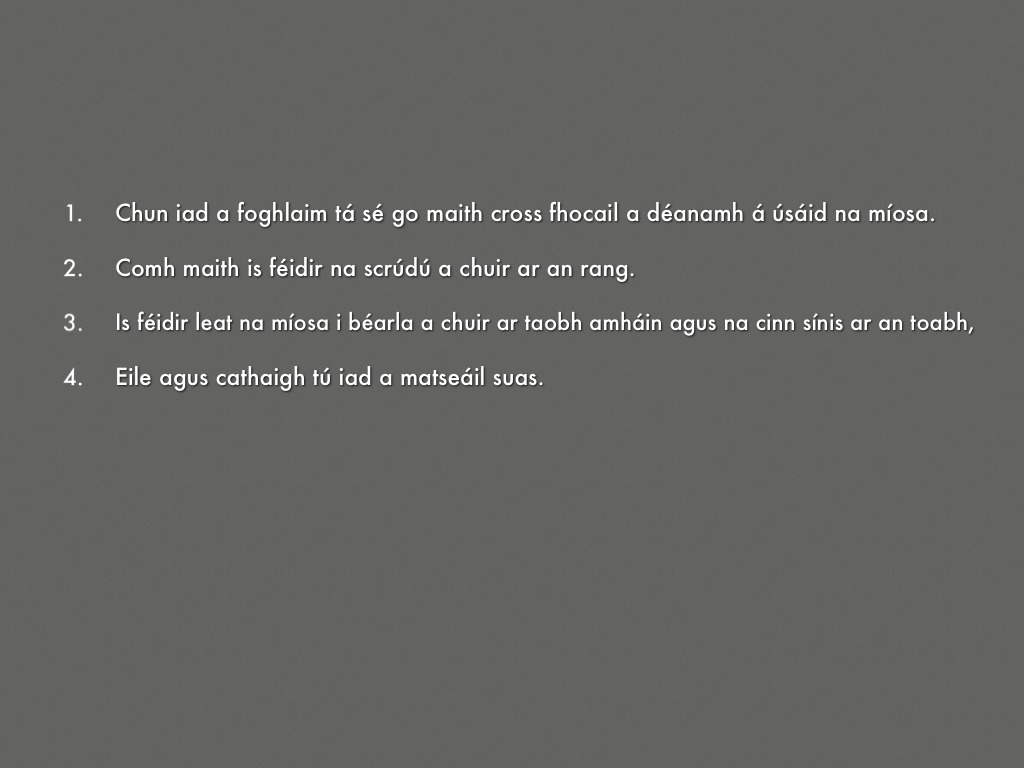 Chun iad a foghlaim tá sé go maith cross fhocail a déanamh á úsáid na míosa.