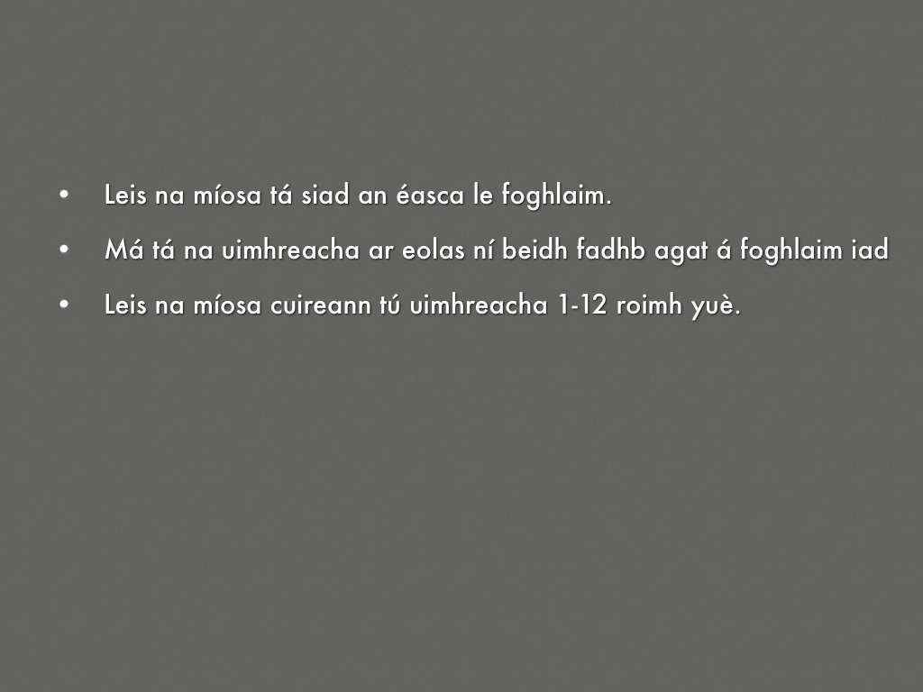 Má tá na uimhreacha ar eolas ní beidh fadhb agat á foghlaim iad